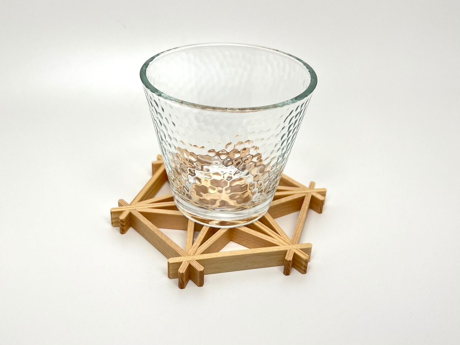 本来は和室の障子などに使われるものですが、その組子をコースターにしました。