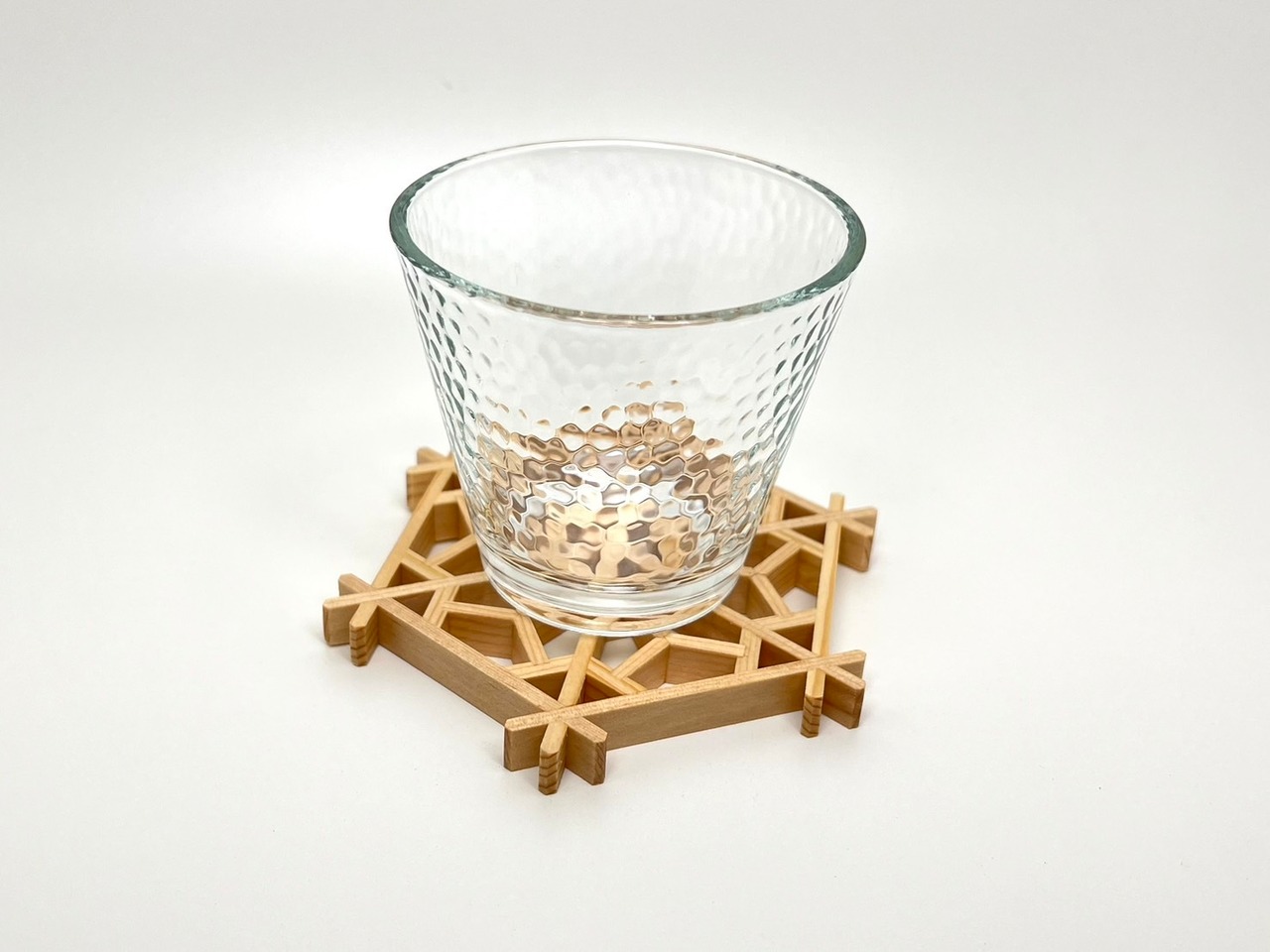 本来は和室の障子などに使われる技術を応用しコースターにしました。