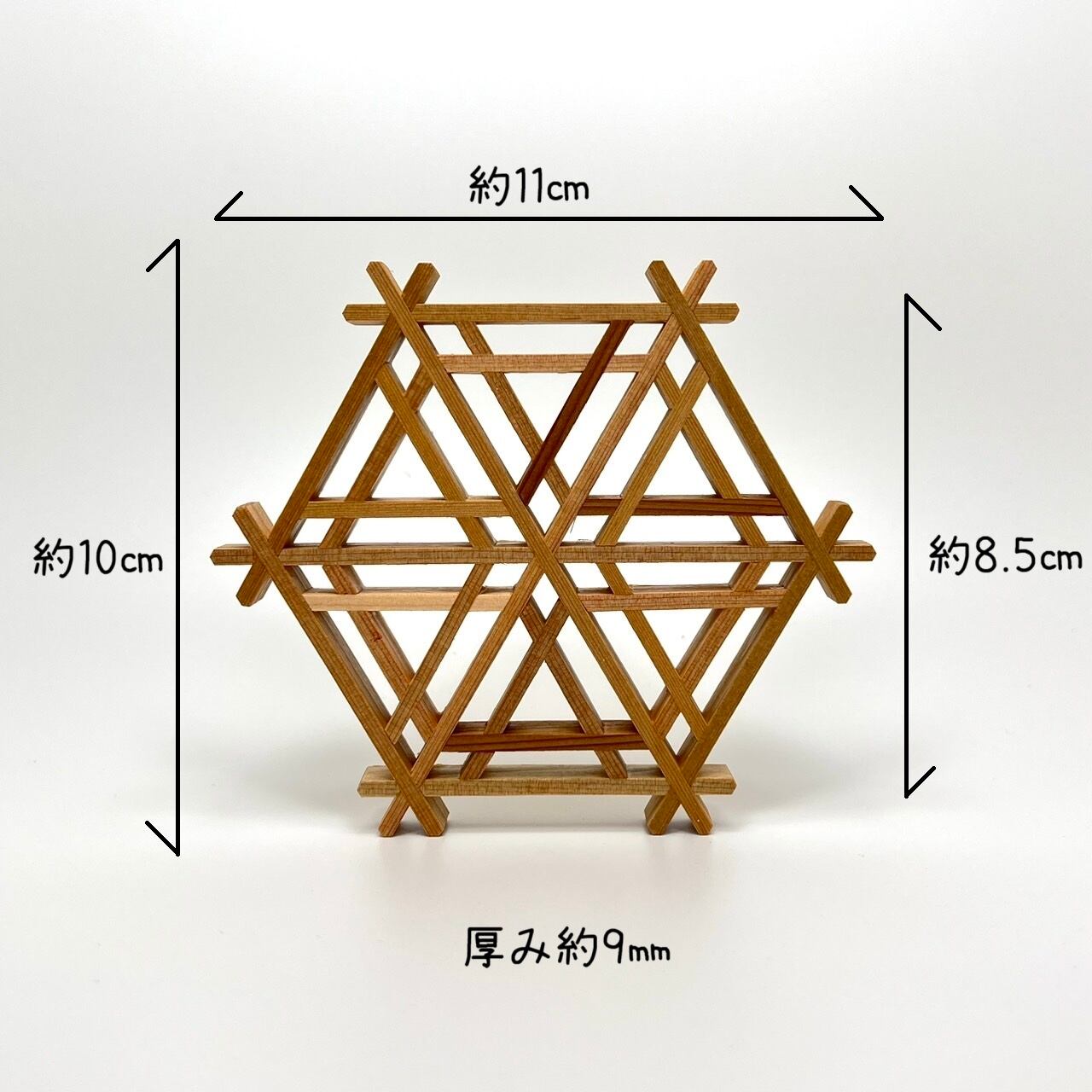 横幅約11㎝ 六角形のサイズ約8.5㎝ 厚み約9㎜