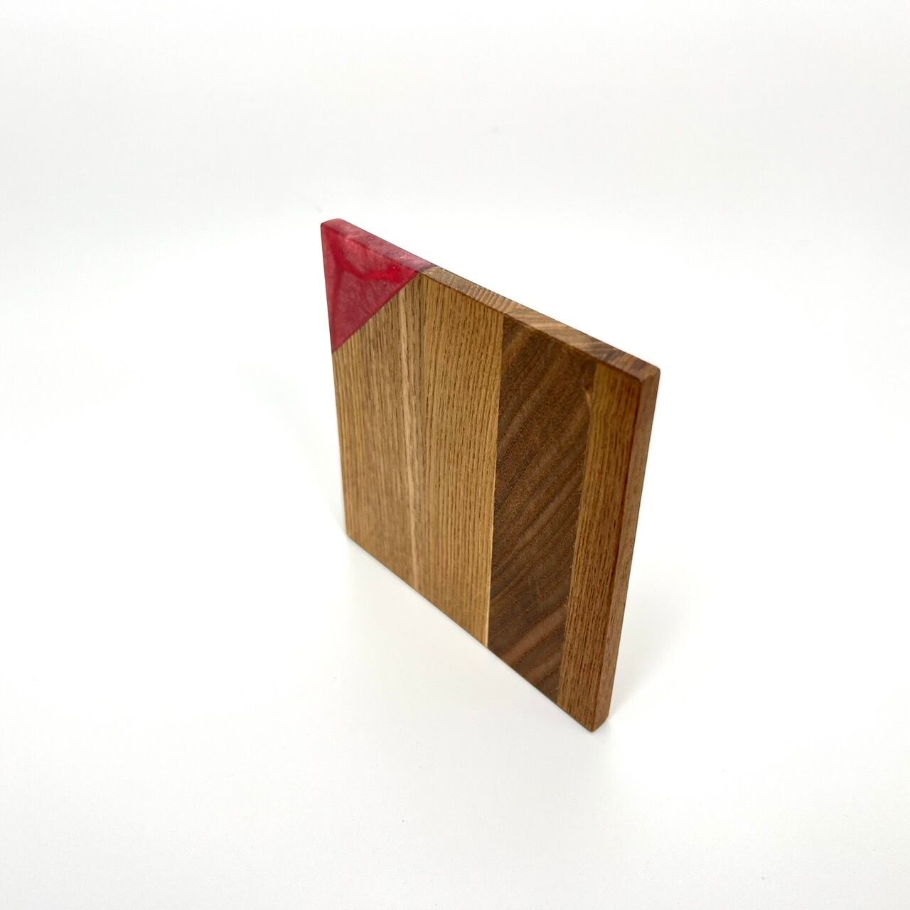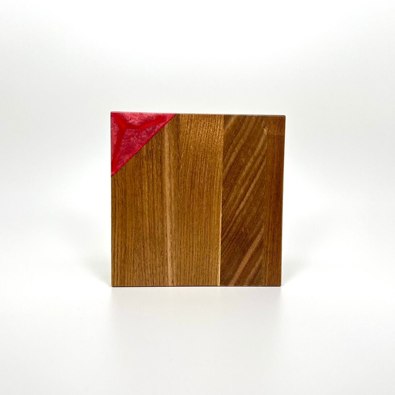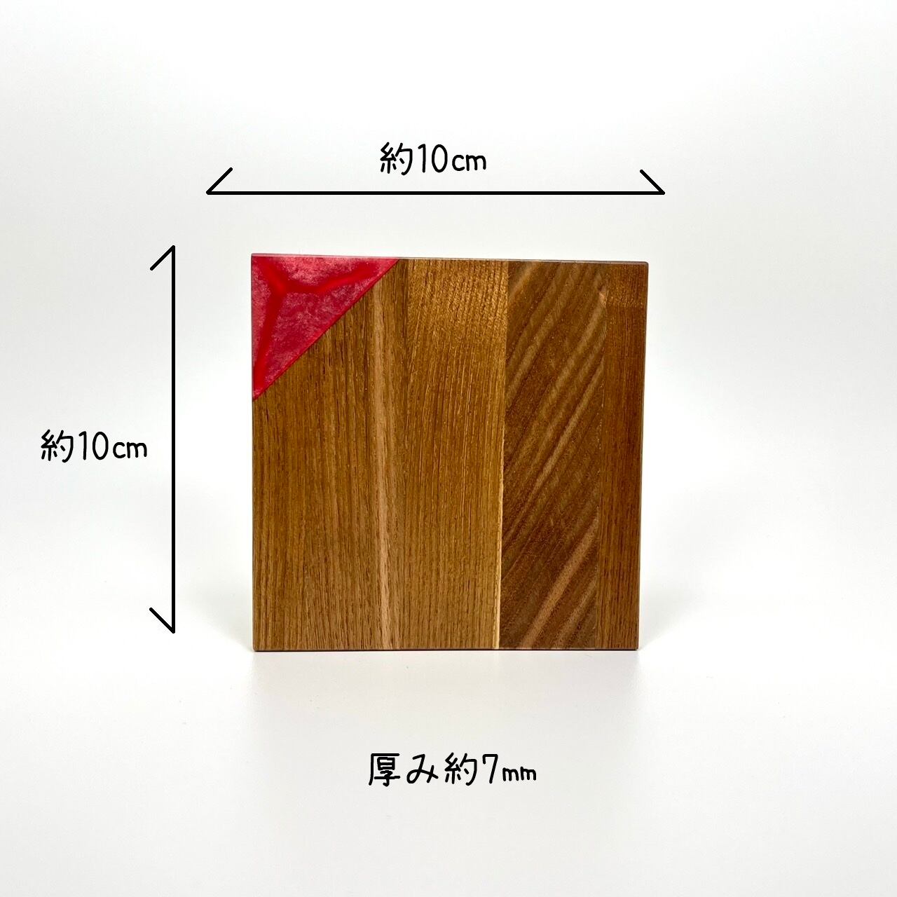 ウッド×レジンコースター 四角 槐(エンジュ) 赤