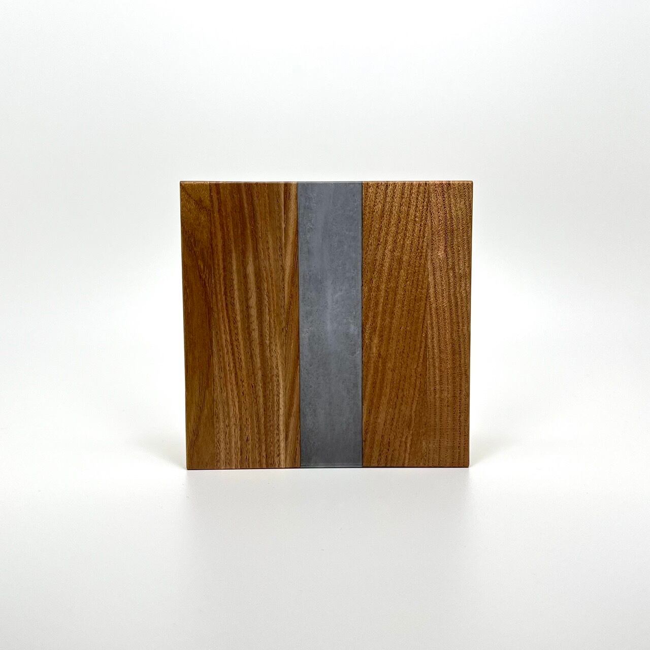 細長い材料を横に接合させた【幅ハギ材】という材料を使用しています。この方法は無垢の一枚板に近い風合いになるのが特徴で、端材を有効利用したコースターです。